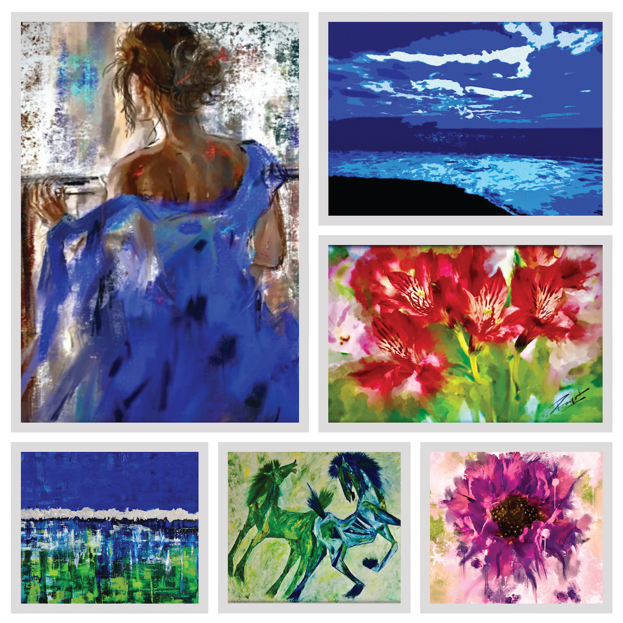 The oil, acrylic and pastel paint brings out the emotions and ideas that enable the viewer to draw an imaginary of nature’s infinite strength and power.
