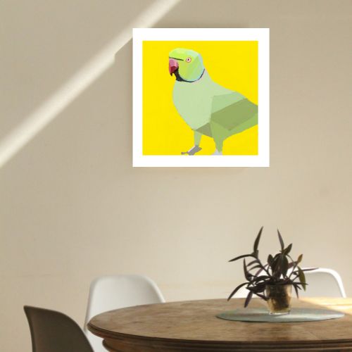 Abstract shapes and lines intertwine, suggesting the bird's graceful flight and agile presence. The painting invites the viewer to explore the depths of imagination and interpretation, allowing each observer to find their own connection with the enigmatic parrot. With its captivating and ever-shifting arrangement, this abstract portrayal of a parrot transcends traditional boundaries, inspiring contemplation, and sparking the imagination to take flight alongside this whimsical avian muse.